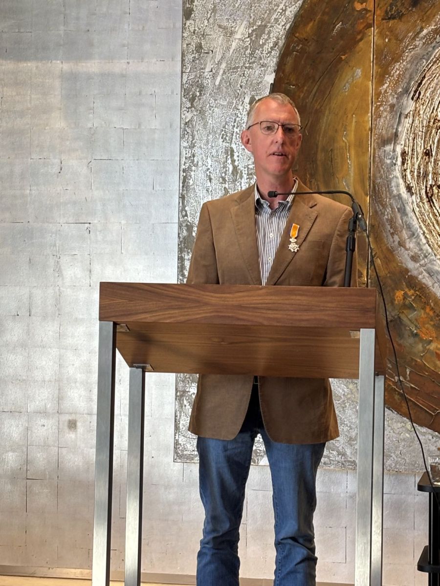 ![]() Koninklijke onderscheiding voor Jan de Jonge Bij de traditionele ‘lintjesregen’ op de dag voor Koningsdag is Jan de Jonge op 24 april 2026 benoemd tot lid in de Orde van Oranje Nassau. De onderscheiding werd opgespeld door burgemeester Gerben Dijksterhuis van de gemeente Borsele. Jan de Jonge is al vele jaren bestuurslid van de Heemkundige Kring de Bevelanden en eindredacteur van het historisch tijdschrift de Spuije, het blad van deze vereniging. Daarnaast is hij actief in een aantal culturele instellingen op Zuid-Beveland. In de raadszaal van de gemeente Borsele werd veel waardering uitgesproken voor zijn werkzaamheden als vrijwilliger door vertegenwoordigers van deze organisaties, o.a. door Piet Hamelink, voorzitter van de Heemkundige Kring de Bevelanden. ![]() ![]() |