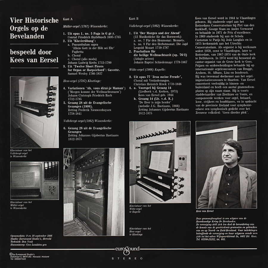 Vier historische orgels op de Bevelanden - bespeeld door Kees van Eersel (LP - 1986)